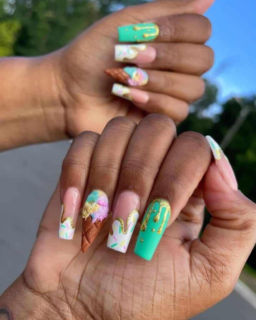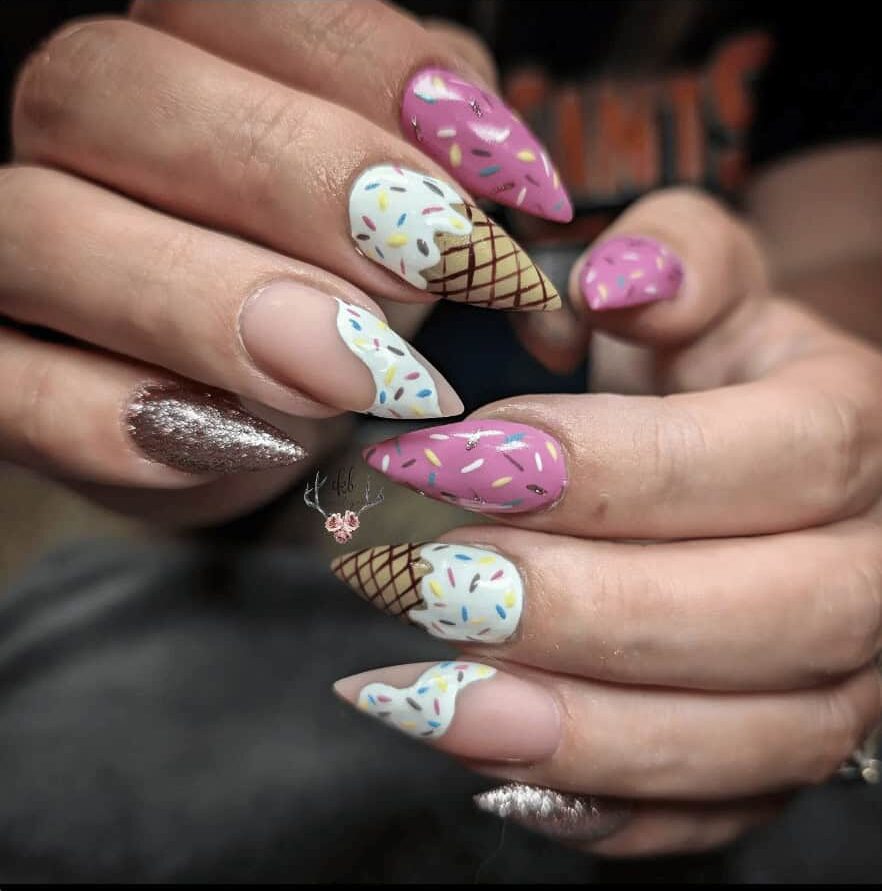 What screams summer more than ice cream? Nail enthusiasts are taking inspiration from the refreshing treat for nail art, with designs featuring sprinkles, syrup and waffle cone patterns.