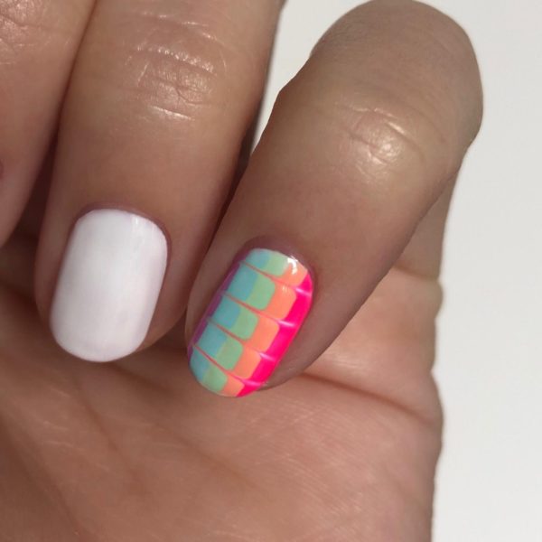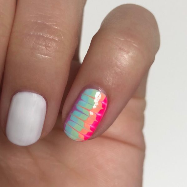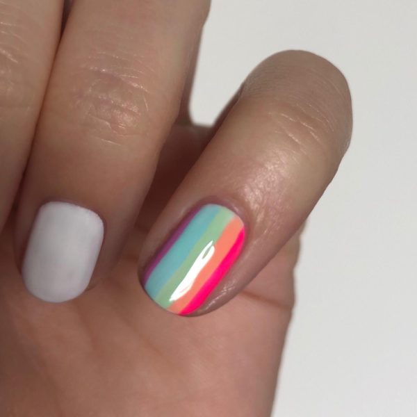 Apply one coat of Gellux in Purely White and cure. The white provides a good base for the stripes and will help to make the colours pop.