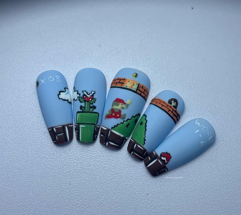 Check out entries to the 26 April 2023 nail art challenge from Scratch, in which techs were tasked with creating nail designs with the theme: Super Mario Bros.