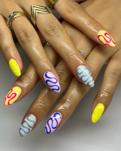 We’ve rounded up swirly nail designs to inspire a bold, playful take on spring/summer nail styling…