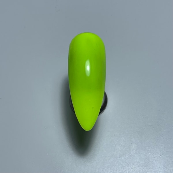 Paint a nail tip a light green gel polish colour, cure, then apply a non-wipe top coat and cure.