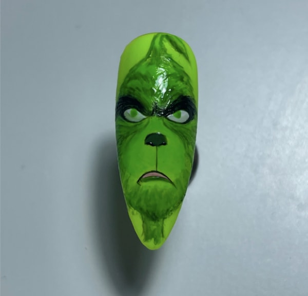 You’re a mean one, Mr Grinch! UK freehand nail artist, Gemma Dawson, has created this Grinch nail design, perfect for the festive season.