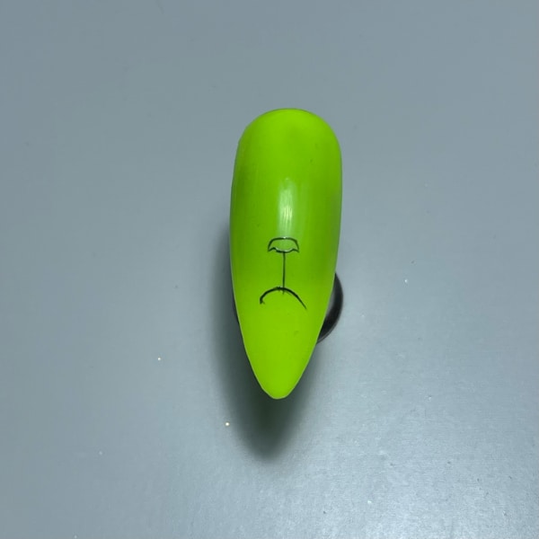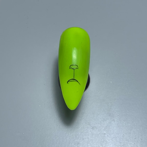 Using a dark green or black gel paint, add a small mushroom shape in the centre of the tip and paint a vertical line down from it.