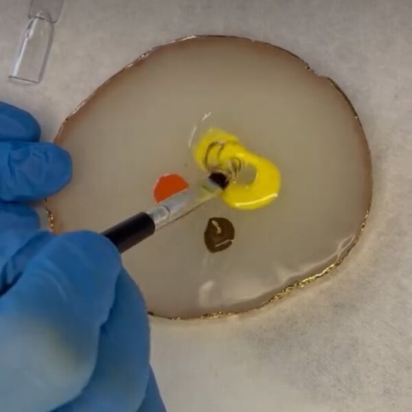 Apply Seal + Shine Top Coat and follow with another layer of tortoiseshell spots to build up the pigment. Cure.