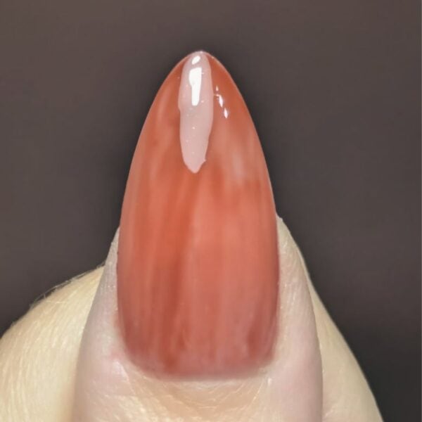 Apply a layer of the sheer mixture of Pumpkin, Umber and Base Coat. Cure for 60 seconds.