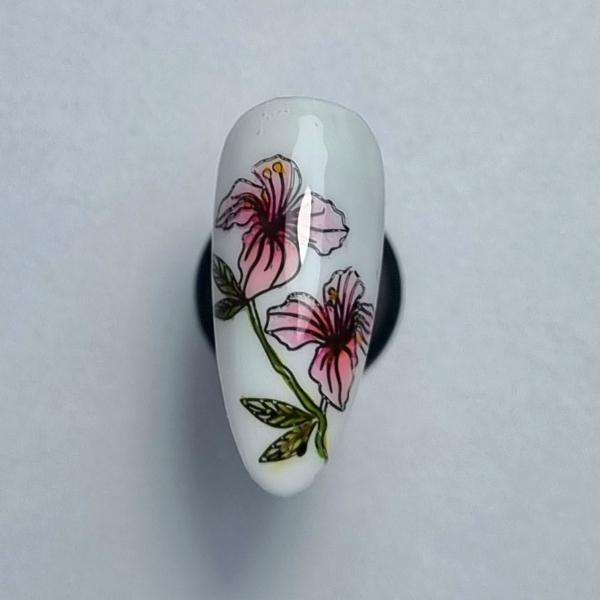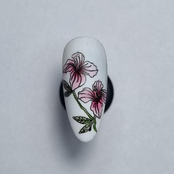 Stars Home Nail Salon of the Year finalist, Vonny Tuckley of Nailcraft by Vonny & Nailcraft Training Academy shows off how to create this vintage watercolour floral design using the Moyra Stamping Plate in 107 Botanical.