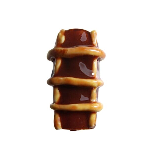 Mix equal parts of an amber jelly gel polish and clear 3D gel, and add a small amount of dark brown jelly gel polish to deepen the colour. The formula should be a slightly runny consistency for a syrup-like effect. Load up the liner brush with the mix and apply over the entire nail. Cure, apply a glossy top coat and cure to finish.
