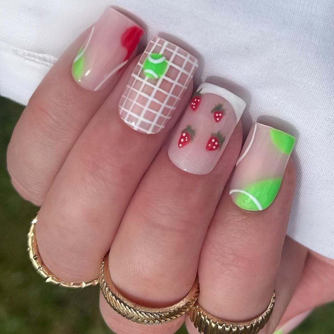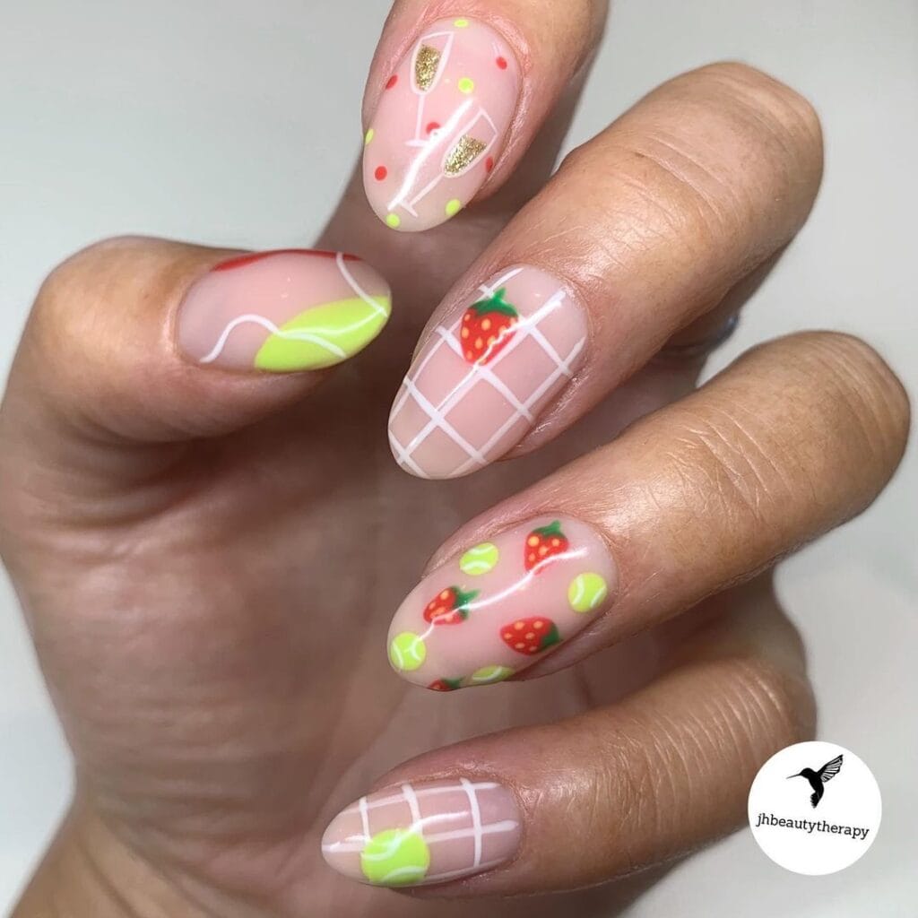 Pimm’s and strawberries and cream anyone? We’re serving up nail art designs to get you in the swing for British tennis tournament, Wimbledon (30 June – 13 July 2025), courtesy of pros on Instagram…