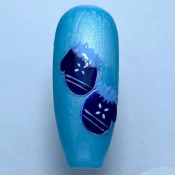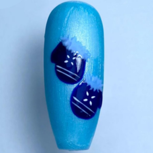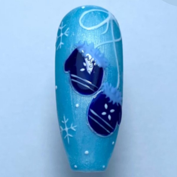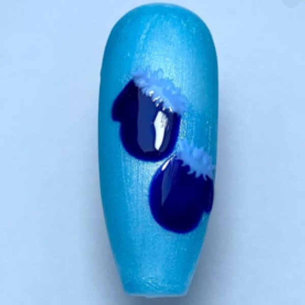 Using a contrasting gel polish colour, paint detail onto the mitten shapes and cure.