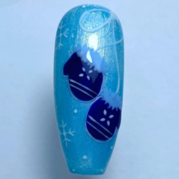 Paint the mittens as shown, using your chosen gel polish colour, and cure.