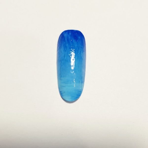Apply a dark blue gel polish to the top and bottom third of the nail. Add a light blue shade in the center of the nail. Don't cure.