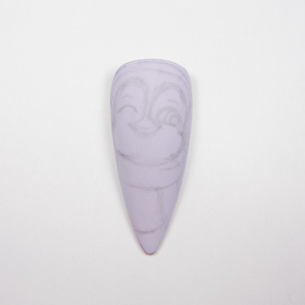Paint the nail using Prima Viktoria gel polish and cure. Draw a draft sketch of the design with pencil.
