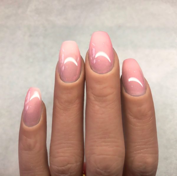 Pour some clear Gellux Acrylux Powder Crystal Clear over the entire nail on the middle finger. Cure. Dust off any excess powder with a soft brush and apply Gellux Nail & Cuticle Oil.