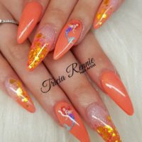We want to see the designs trending at your nail desk! Tricia Rennie, of Tricia Rennie Nail Artist, reveals that peach enhancements seeing encapsulated chunky glitter and mermaid nail art…