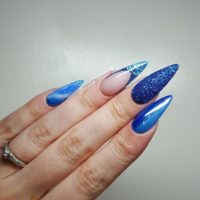 We want to see what you’re wearing on your nails! Talented tech, Emma Atkinson, has us seeing blue with a nail set inspired by the holiday season. “I created them…