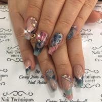 We want to see what you’re wearing on your nails! Corey Jade Stockwell, of Nail Techniques, was inspired by a recent purchase when she created this floral, water colour effect…