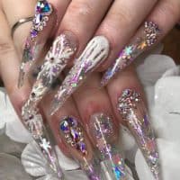 We want to see what you’re wearing on your nails! Char Jones, of Charovski’s, spontaneously created these icy stiletto nails gathering inspiration from the snowy weather and, fellow tech, Gemma…