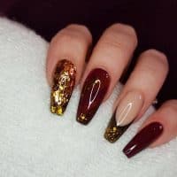 Emma Atkinson gave her nails some TLC with this glamorous mani, perfectly fitting with the festive season. “I sculpted a thin layer of clear acrylic using NSI Attraction Crystal Clear…