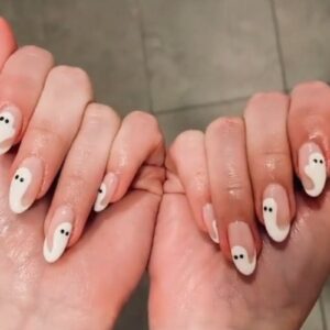 Featured image courtesy of Instagram.com/nailsbyzola Watching famous faces lean into spooky season is one of our favourite hobbies, and many celebs take a ‘no holes barred’ approach to Halloween nails. From horrifyingly realistic blood splatters to cute ghost French tips, we have rounded up the best A-lister nail looks: spooky…