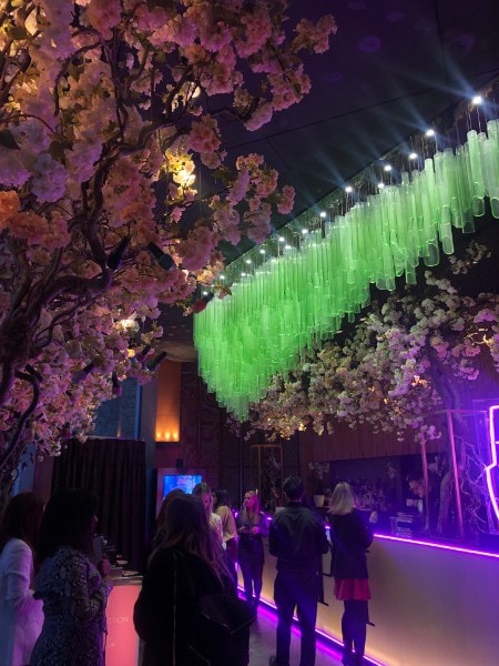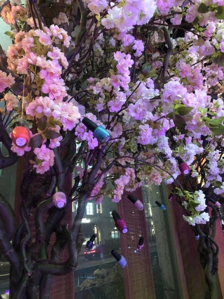Cherry blossom towered above my head, with OPI bottles tied to its branches for a quirky touch. A neon light in the shape of an OPI bottle was a fun talking point – but the star of the show was the sushi bar-style conveyor belt, with each of the 12 shades from the collection on plinths revolving around as attendees watched.