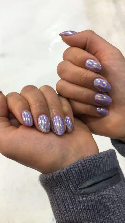Our finalist’s looks were based on their potential final performance – the Bolero! Pro skater, Vanessa, wore lilac and silver so I used the GELLUX Gel Polish in Vividly Violet for this look with the Daily Charm Unicorn Holographic Chrome over the top – I think this was one of her faves!