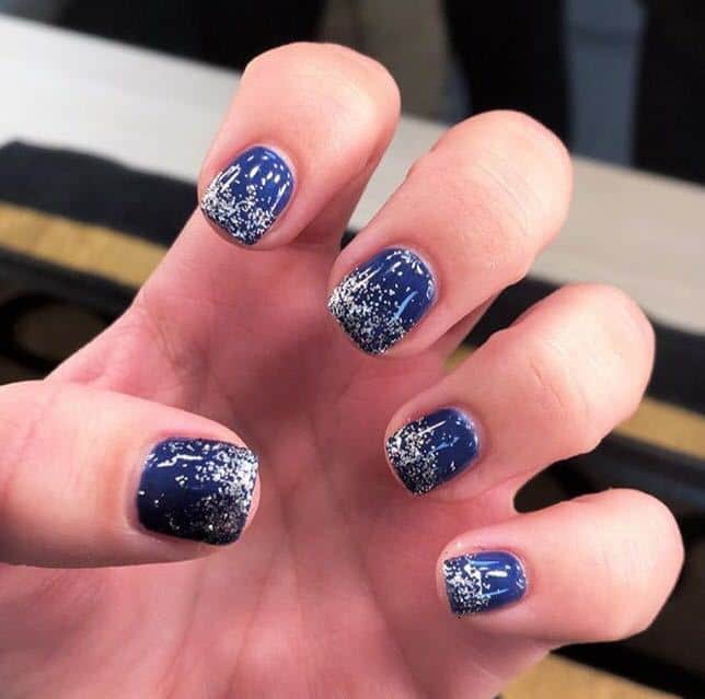 Finally, skater Ale, wore a gorgeous deep blue, turquoise and silver. We opted for the GELLUX Black Onyx mixed with Mermaid to create a gorgeous shimmering baby blue and added hints of the Lecente Silver glitter on top. Divine.