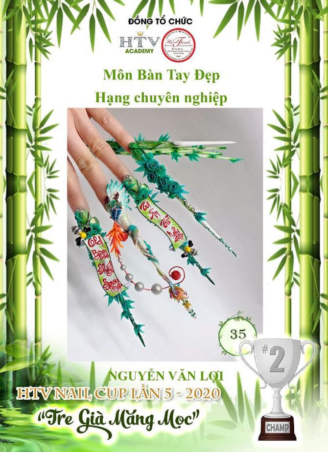Hua Thanh Vy director of education for HTV Nail Vietnam Academy for nail design in Ho Chi Minh City, Vietnam, hosted and organised one of the largest nail competitions the world has seen during the pandemic – The HTV Nail Cup 5th Edition 2020. The theme across the board was ‘Old Bamboo Shoots Sprouting’, which was interpreted and expressed through flat art, 3D art and bling sectors. Fifty sponsors supported the event, which attracted 100 competitors, 171 entries and 300 guests at the awards event.