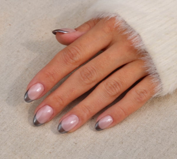 Drawing inspiration from the latte make-up trend, Mocha Moment uses an on-trend chrome finish over a soft brown French tip.
