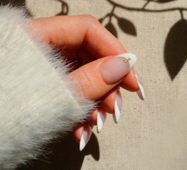 Add a personalised touch to manicures with Touch of Charm, placing delicate gold initials 0ver the classic French tip.