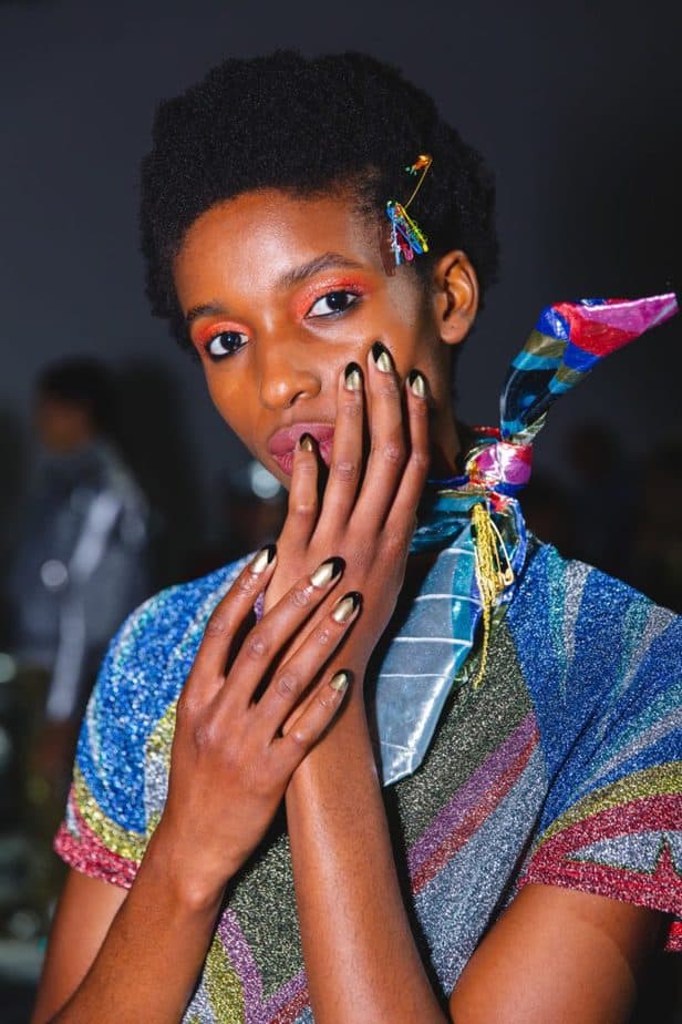 Orly nail lacquer was used by techs working on the nail styles for Sadie Williams’ London Fashion Week presentation.