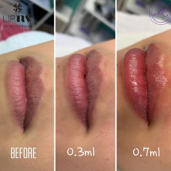The treatment uses a pressurised pen to deliver hyaluronic acid into the lips and skin, plumping the lips and helping to minimise fine lines.