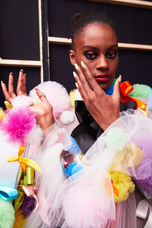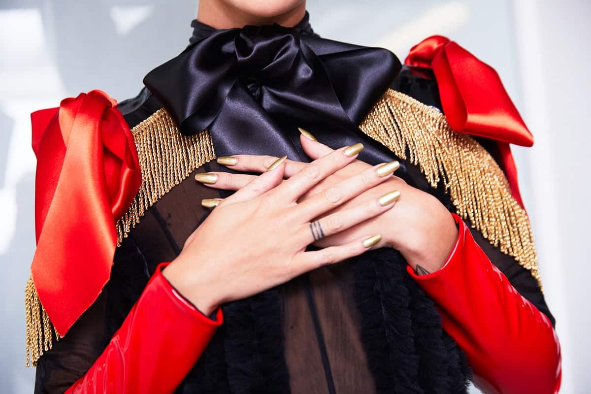 The Pam Hogg AW20 ‘Will There Be A Morning’ show saw a rebellious, edgy and dark collection complemented by nails painted in the three most prominent hues from the catwalk; gold, black and blood red.
