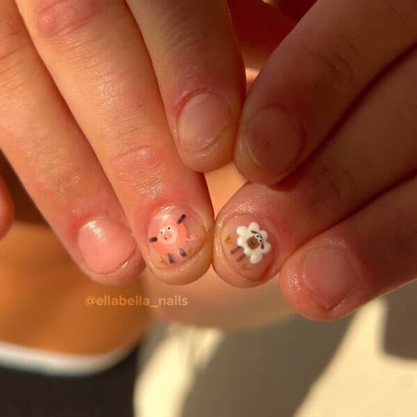 This cow and sheep nail art look was created using The GelBottle Inc™’s Daisy, Jet Black Studio Gel™, Brunette, Avant Garde, Bare, Gossip and Matte Top Coat.