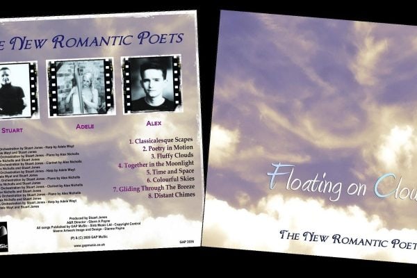 Gap Music has released Floating on Clouds a first album by The New Romantic Poets. From the delightful opening piano, to the introduction of the magical harp, accompanied along the way by the beautiful clarinet, you really do feel that you are about to hear something very special.