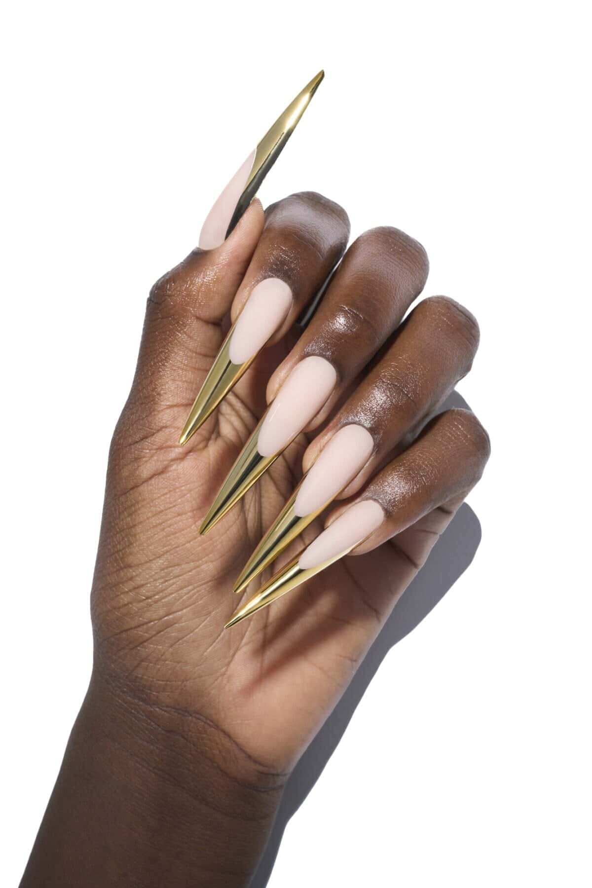 The Trinidadian-born artist is renowned for her flamboyant outfits and extravagant nails, and has often been papped with long, bejewelled talons. She hired nail designer, Yvett G, to design the brand’s products and oversee production, and launches with 11 press-on nail designs in a range of colourways.