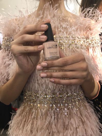 “Light sheer-nude nails instantly display an effortless air of sophistication and femininity,” adds Tamara Ralph, of Ralph & Russo. “The look complemented the spring/summer 2018 collection colour palette beautifully.”