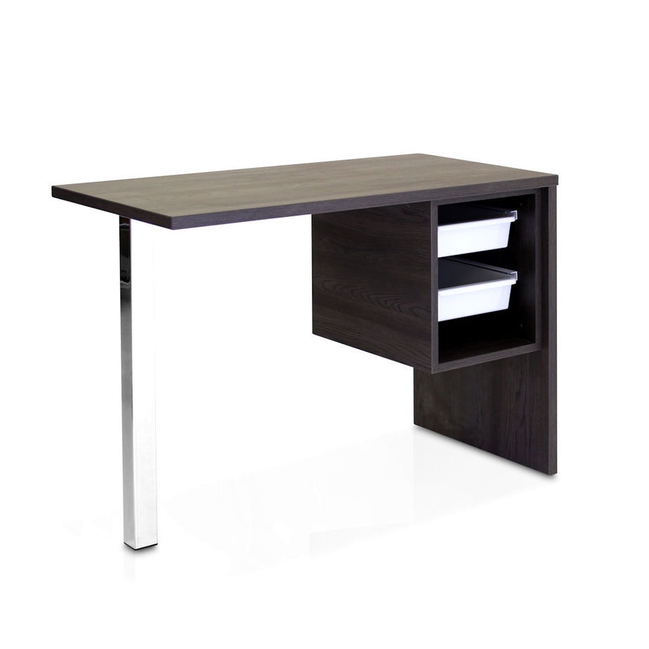 The desk sees a twin tray storage module for easy access to items during appointment and slick products storage in-between clients.