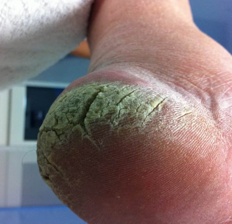 Step 4 Use a warm, damp towel to remove the product from the feet and between the toes. Rinse the feet if desired.