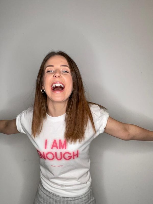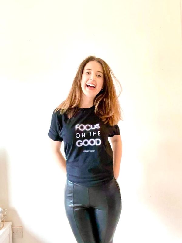 Five t-shirt designs are currently available, featuring different positive affirmations. The designs are printed on an organic, ethical, climate neutral and PETA-approved vegan t-shirt. Phrases include: ‘I am enough’, ‘Bad vibes don’t go with my outfit’, ‘Positive AF’, ‘Live more worry less’ and ‘Focus on the good’.