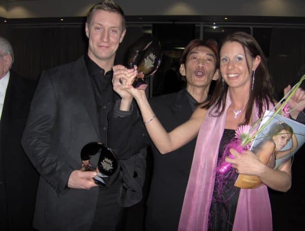 Photo: Always The Joker – Joseph tries to take Amanda’s trophy for Salon & Technician of the Year 2008