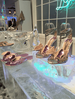 As I moved on, I then came across a large ice sculpture with some of Sophia’s shoe designs displayed carefully upon it. Renowned for her elaborate creations, Sophia’s latest collection was a dream to admire with high heels featuring bejewelled angel wings and sandals featuring 3D butterflies and sequins.