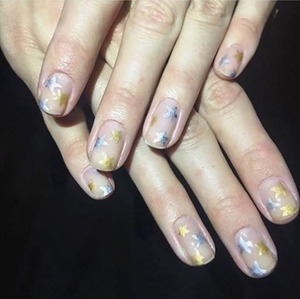Manicurist, Mar y Sol Inzerillo, complemented the collection by painting the nails of the models in oh-so American gold and silver stars on a clear base using China Glaze lacquers.