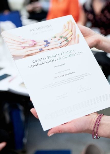 They were taught the application techniques required when working with premium crystals in the nail industry, as well as understanding of the products, which they can then pass onto other techs via conducting the Swarovski Nail Art Programme in their area.