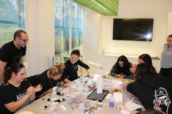 Techs add sparkle to nails at the Swarovski Crystal Heaven Workshop