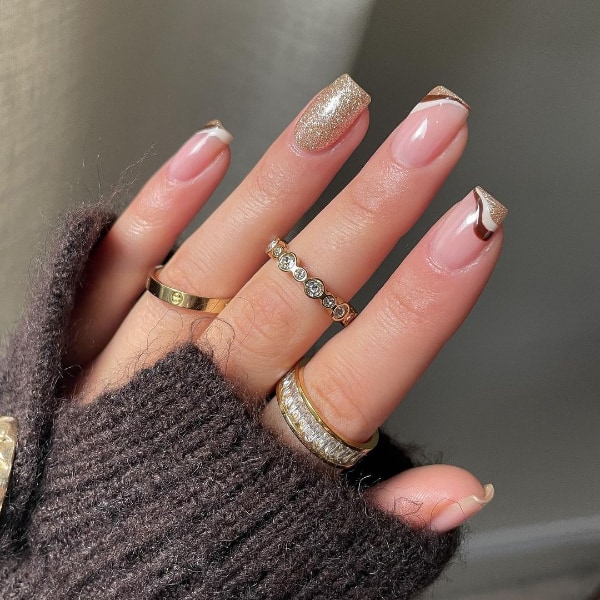 Nail artist, Amy Skillicorn from the Isle of Man, uses brown and glittery gold to create a statement-making look.