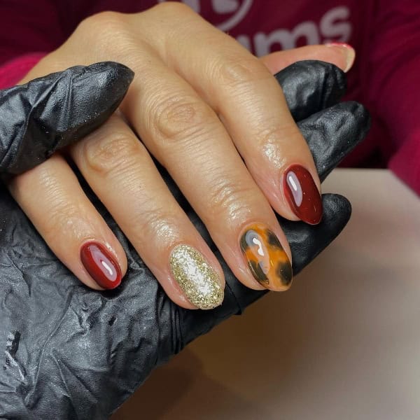 A firm favourite year after year, tortoiseshell nail art combines deep browns and caramel tones for apt autumnal styling. The versatile tortie look can be worn alone or as a feature nail alongside other seasonal shades for a subtle yet striking finish.