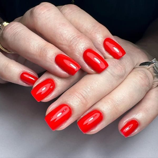 Spicy red nails never go out of style, as shown by Carrie Murphy of The Nail Room (@carries.nail.room), Blandford Forum.