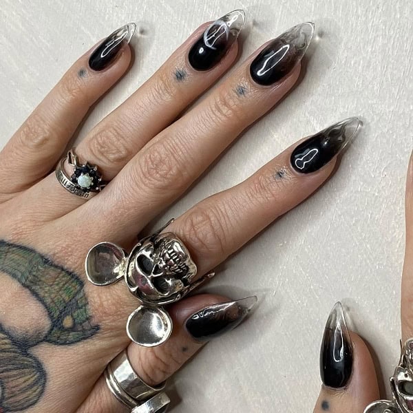 Brighton-based tooth gem and nail artist, Hannah of @gellraiser, adds a smoky twist to enhanced nails.