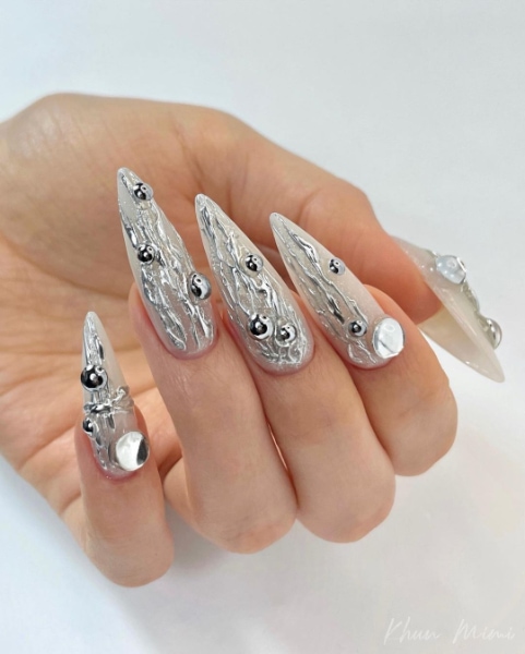 This 3D design by French nail artist, Khun Mimi (@khun_mimi), makes a striking statement and evokes a wintry feel.