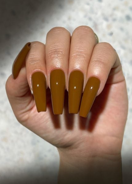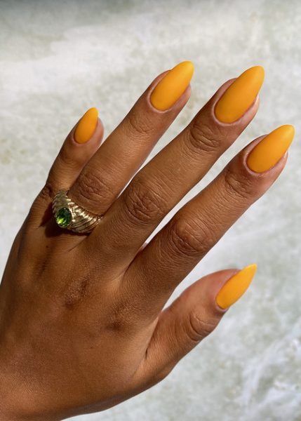 - Amber – Amber is a glass-effect orange shade that’s warm and intriguing. Imagine the clarity and colour of that ’70s collectable retro glassware and you’re almost there. A high-gloss shade that has drama and elegance in equal amounts.